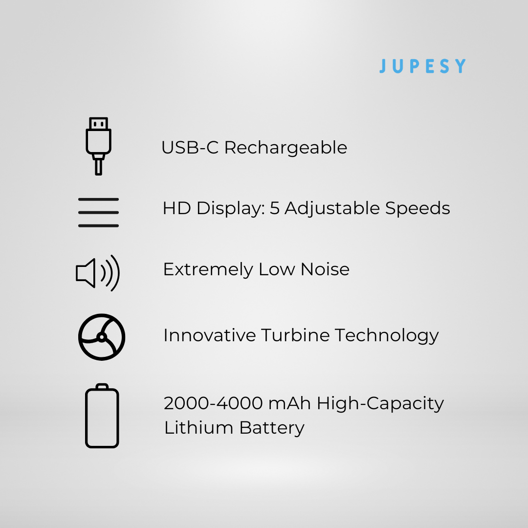 Beat the summer heat with powerful airflow packed into a sleek, compact design. This handheld mini fan combines 5 adjustable wind speeds with advanced turbine technology—so you can enjoy anything from a gentle breeze to high-speed cooling, tailored to your comfort.